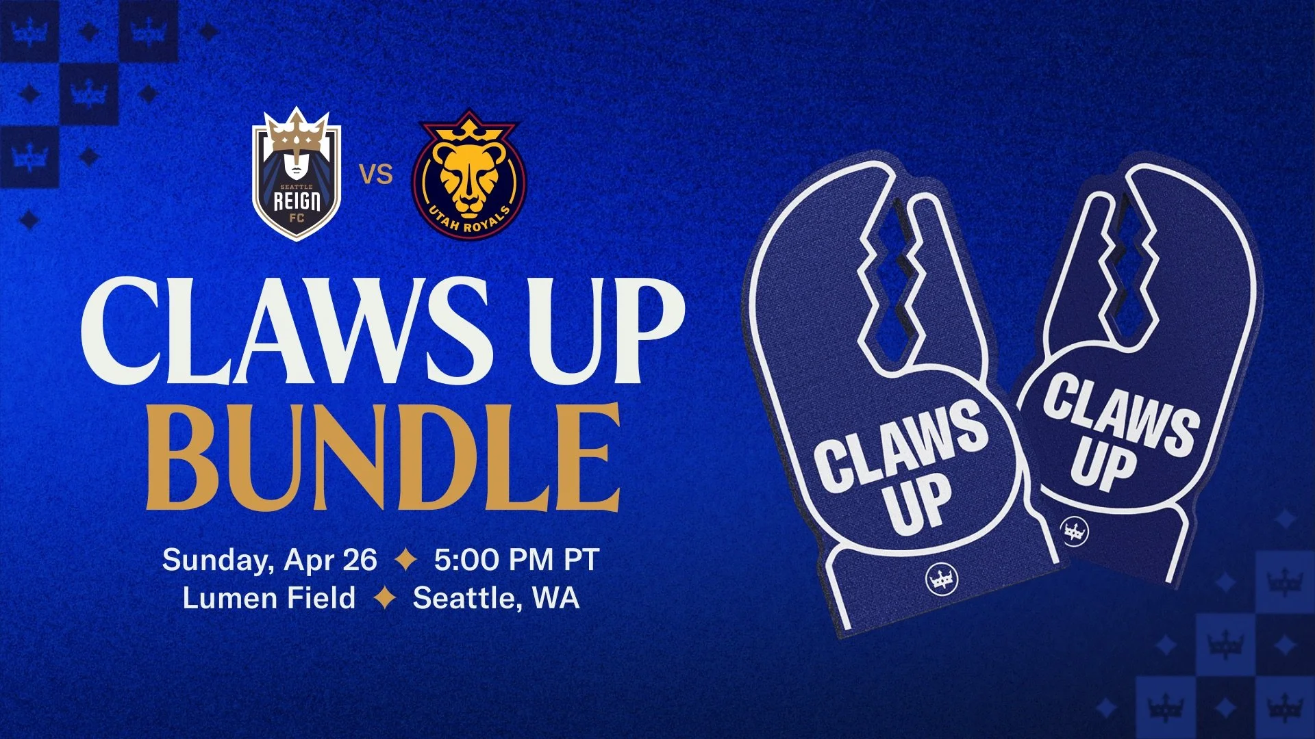 Join the Claud Squad with this Claws Up Ticket Bundle. It includes a ticket to our Lumen Field Home Opener on April 26 vs. Utah and a Foam Claw celebrating one of the league’s best goalkeepers, Claudia Dickey.