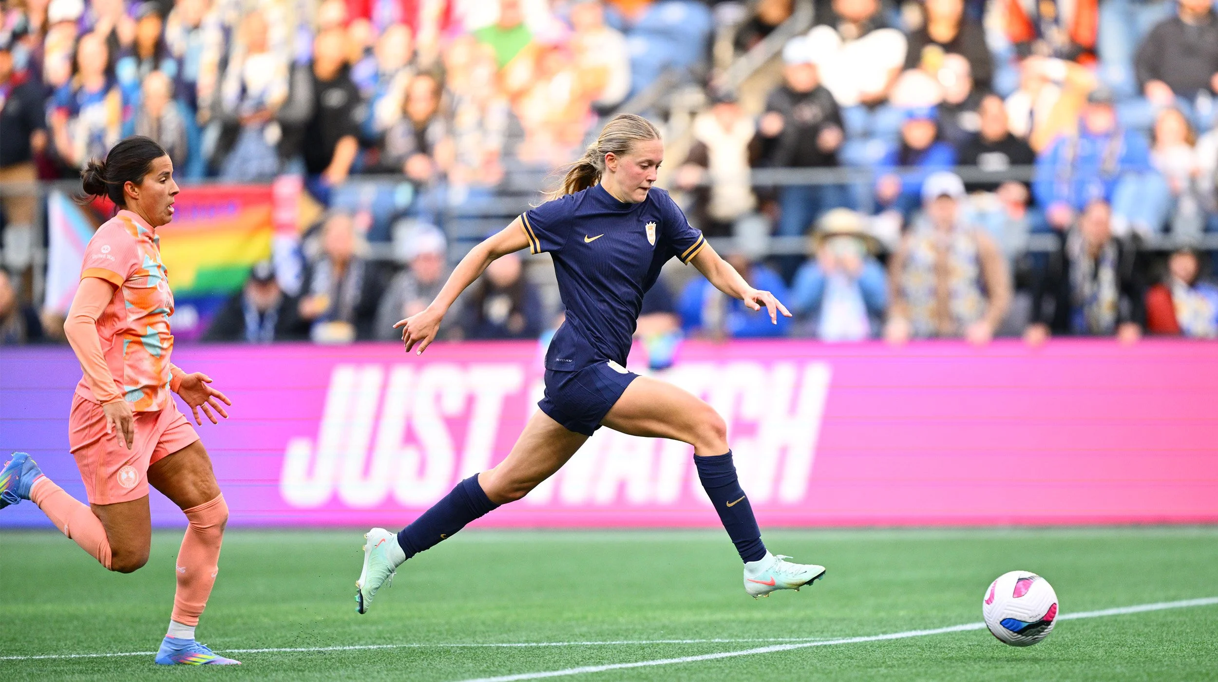 Seattle had their first chance of the match in the 11th minute when forward Jordyn Huitema, in her 50th regular season appearance for the club, caught Orlando goalkeeper Anna Morehouse off her line. Huitema directed the ball toward the goal, but an Orlando defender was able to recover and keep the ball out of the net.