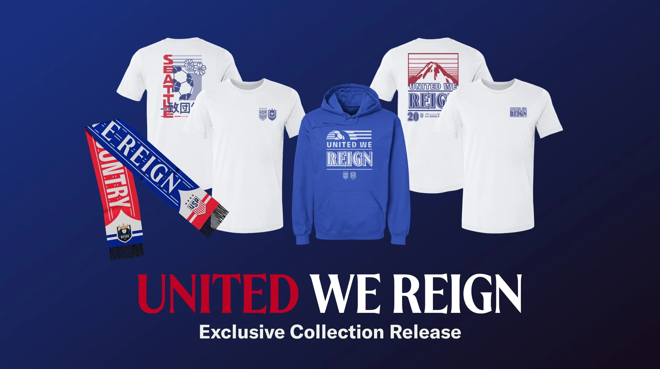 This collection, United We Reign, was created to meet the moment and honor the USWNT as they take the field at Reign FC’s home stadium for a marquee friendly against Japan. It celebrates the shared power, movement and unstoppable energy of the women’s game.