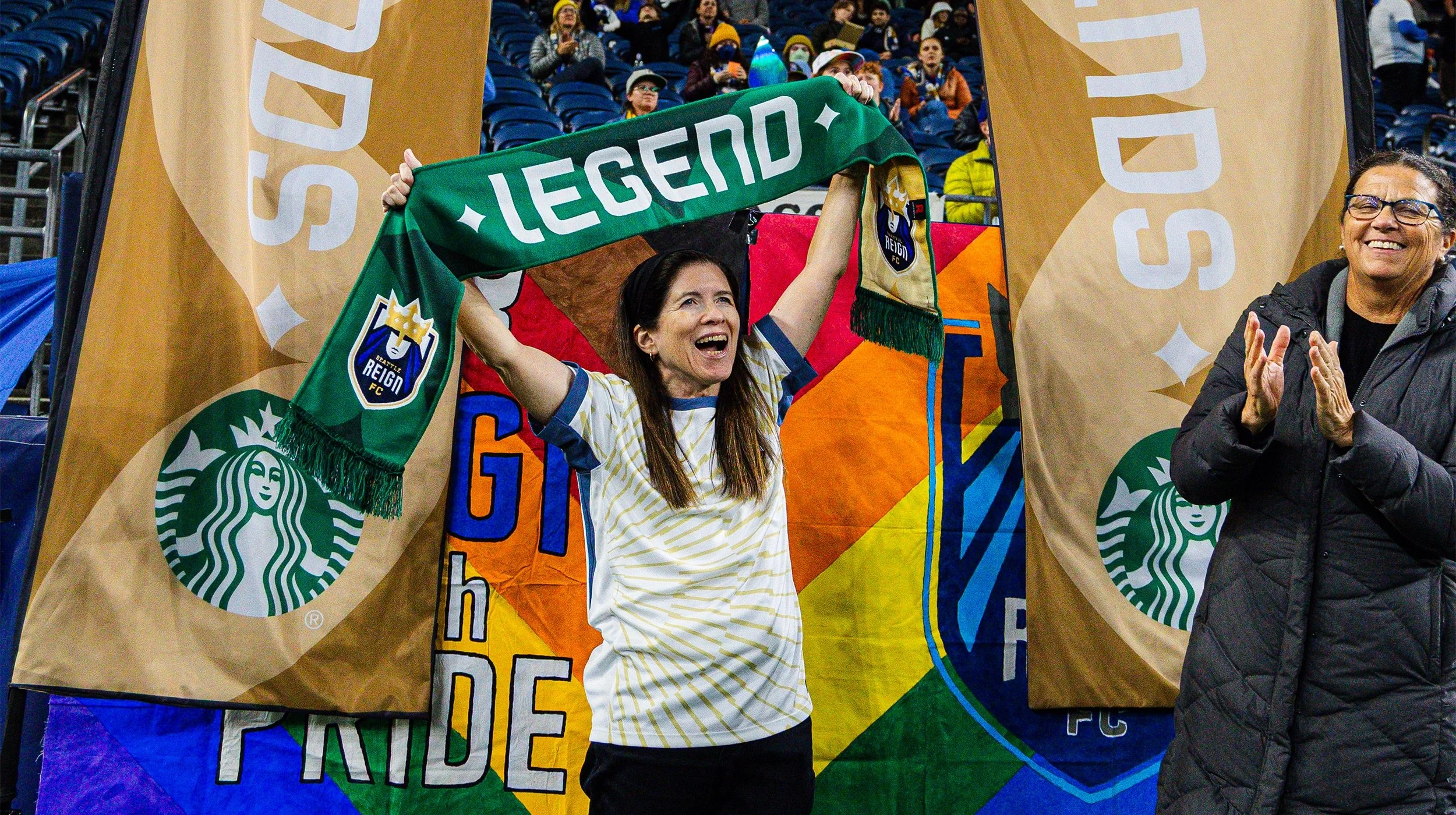 The Legends Campaign, a partnership between Seattle Reign FC and Starbucks, honors women for their extraordinary contributions to our community in the Pacific Northwest and beyond. Prior to Seattle Reign FC’s match against Utah Royals FC, the club recognized Dr. Cecilia Aragon, an award-winning author, airshow pilot and professor at the University of Washington.